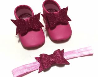 MOCASSINI in ECOPELLE con fiocco glitter e fascetta con fiocco in coordinato
