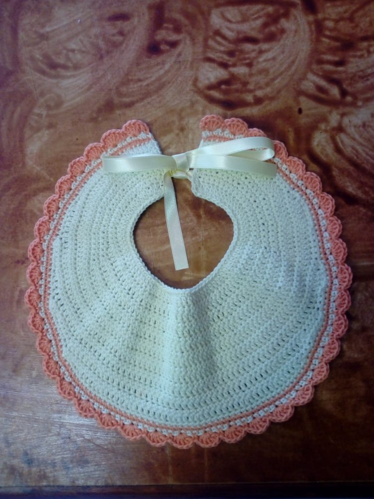 Bavaglino rotondo bicolore realizzato ad uncinetto con cotone Anchor Baby 100% Puro Cotone