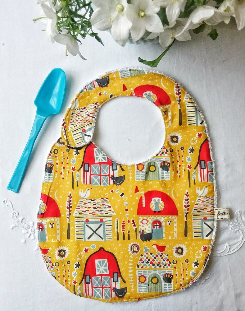 Bavaglino 100% tessuto americano e spugna. La stoffa usata arriva direttamente dall'America, da dove importo le stoffe dei migliori designer internazionali per rendere ogni articolo unico e originale. La chiusura con stretch è comoda e la spugna rende il bavaglino perfettamente assorbente. Puoi acquistarlo per per te o per un regalo nascita.