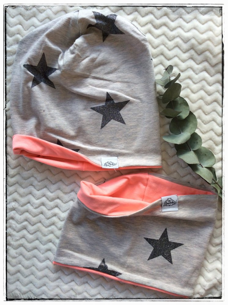 Coordinato berretto e scaldacollo in Jersey di cotone (95% cotone, 5% elastane) certificato öekotest.