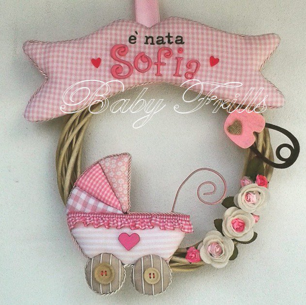 Dolce ghirlanda da appendere al portone di casa per annunciare a tutti la nascita del vostro bimbo.