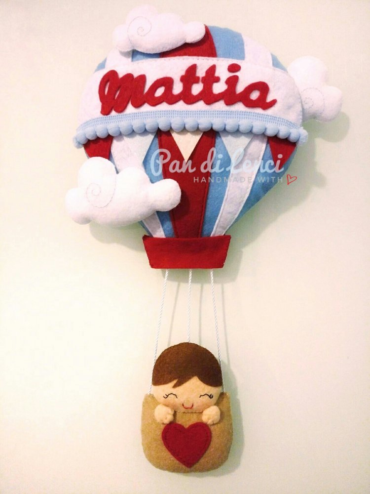 Fiocco nascita in pannolenci Bimbo sulla Mongolfiera