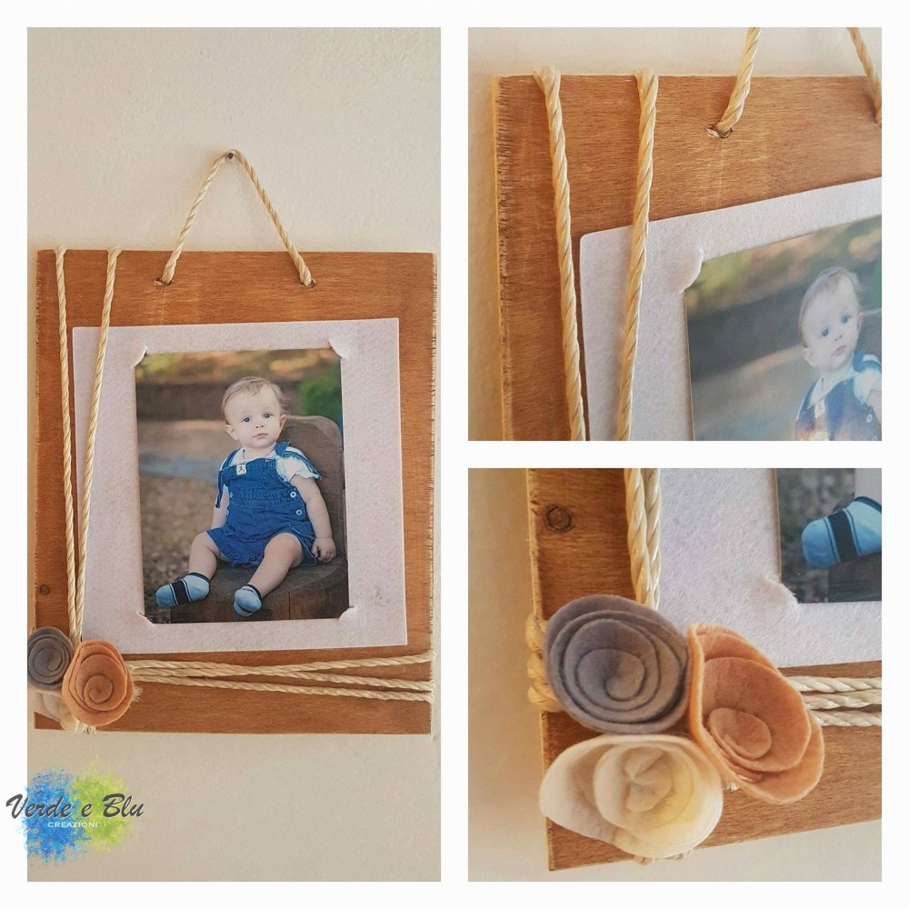 Portafoto in legno con inserti in rilievo in feltro. Possibilità di personalizzare nei colori e negli inserti. tempi di elaborazione in 1-2 settimane, per urgenze o scelta delle personalizzazioni contattare il venditore. Bellissima come idea regalo per la nascita o per abbellire la cameretta.