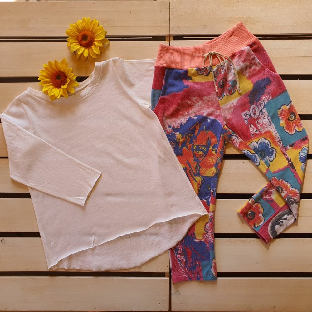 PANTALONE in jersey con cintura in cotone a costine e coulisse per regolare il punto vita, tasche inserite, comodi e adatti alla mezza stagione.