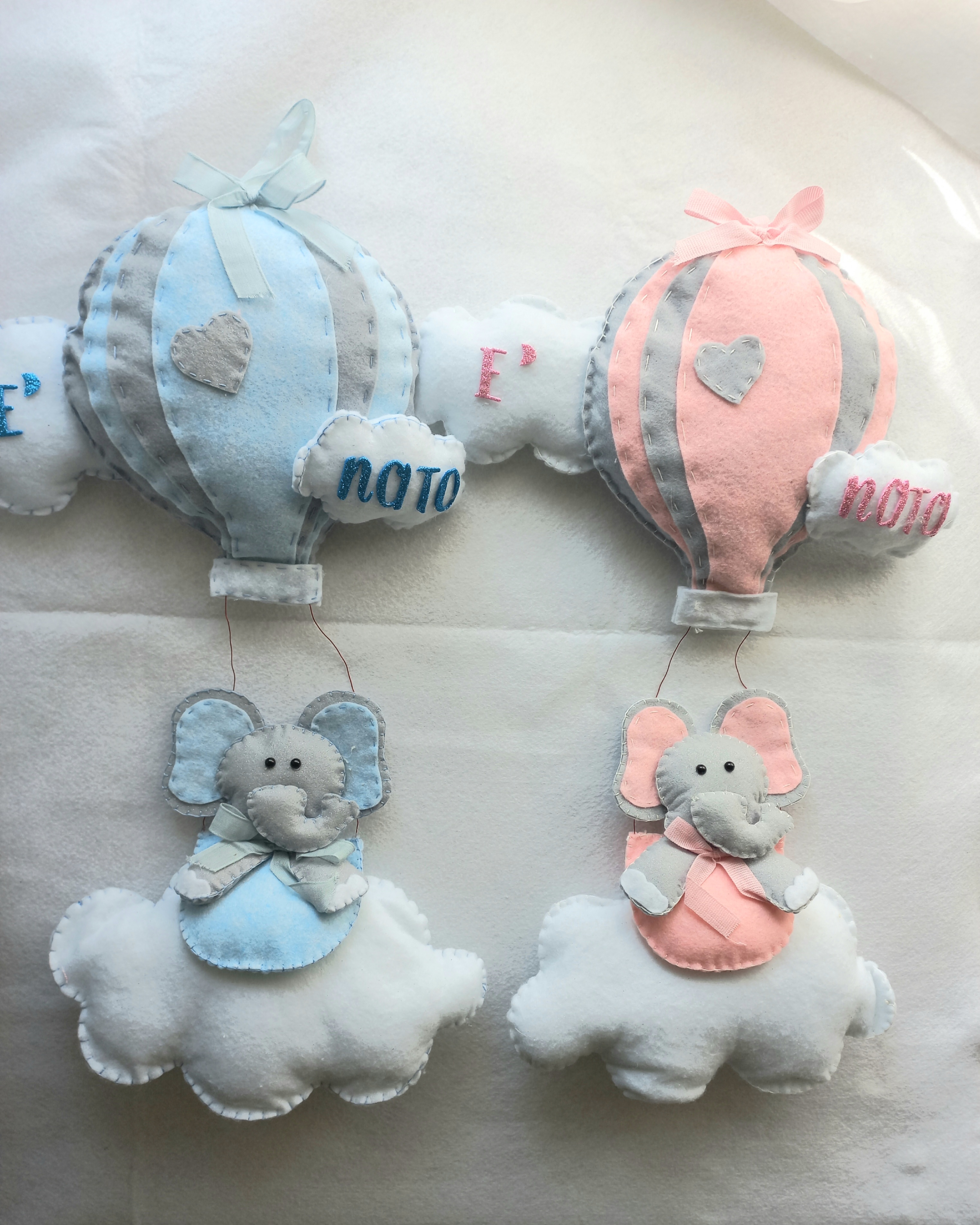 Fiocco Nascita Mongolfiera Ricamata - Rosa o Azzurro - Handmade